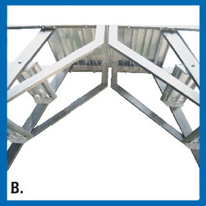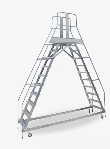 Eโ costruita con telaio in acciaio inox, gradini e pianerottolo in alluminio antiscivolo ed รจ munita di corrimano.