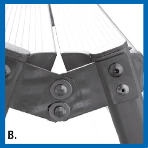 Gradini: sono montati su attacchi pressofusi con piolo e scanso antitorsione, inseriti ai montanti.