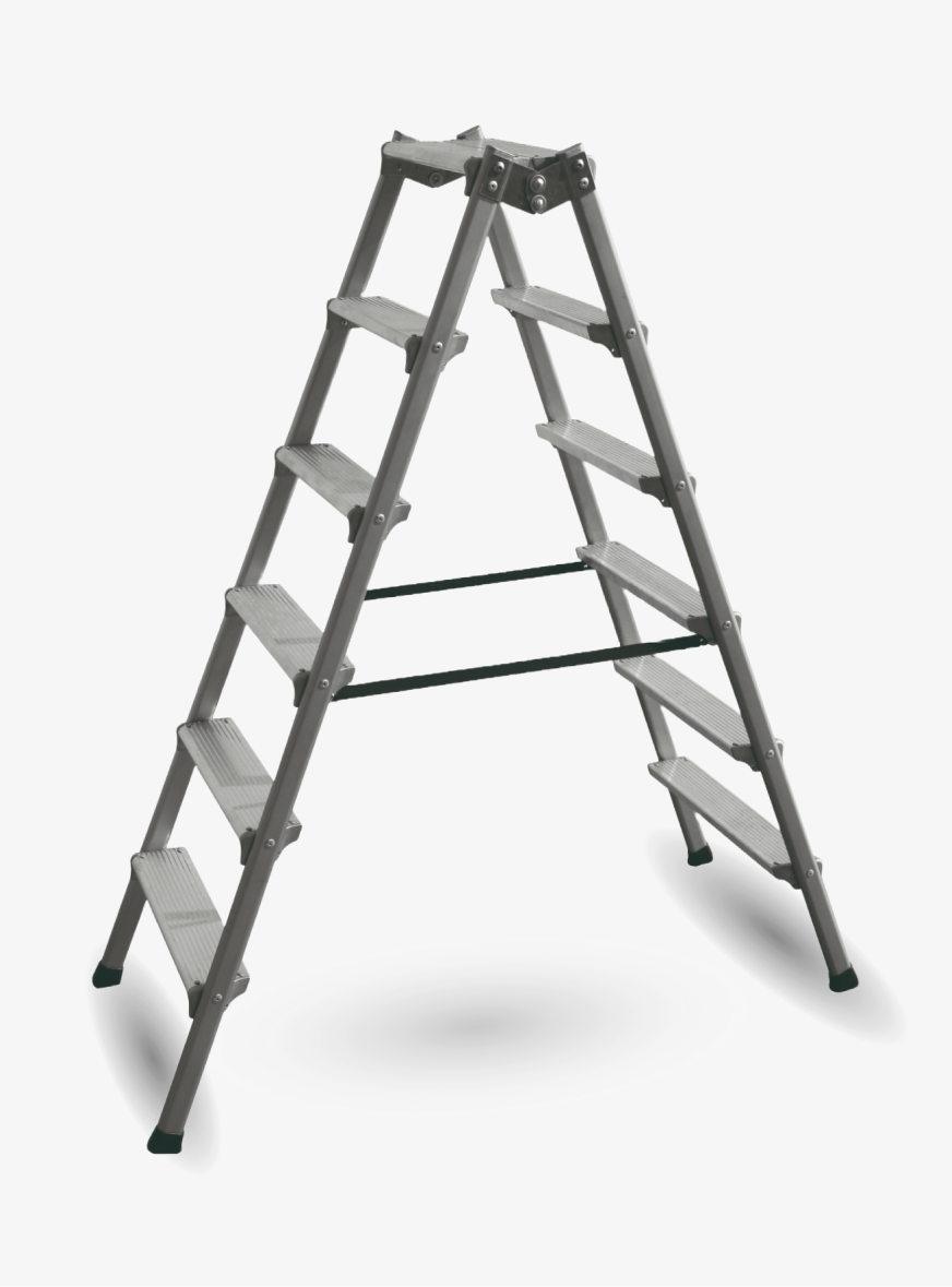 Scala doppia a due tronchi di salita, molto robusta, con montanti realizzati in alluminio anodizzato e gradini antiscivolo. Particolarmente indicata per usi professionali, pratica, leggera e resistente, offre allโoperatore un ottimo comfort.