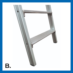 Gradini: sono montati su attacchi pressofusi con piolo e scanso antitorsione, inseriti ai montanti.