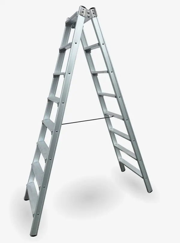 Scala doppia a due tronchi di salita, molto robusta, con montanti realizzati in alluminio anodizzato e gradini antiscivolo. Particolarmente indicata per usi professionali, pratica e resistente, offre allโoperatore un ottimo comfort e maneggevolezza.