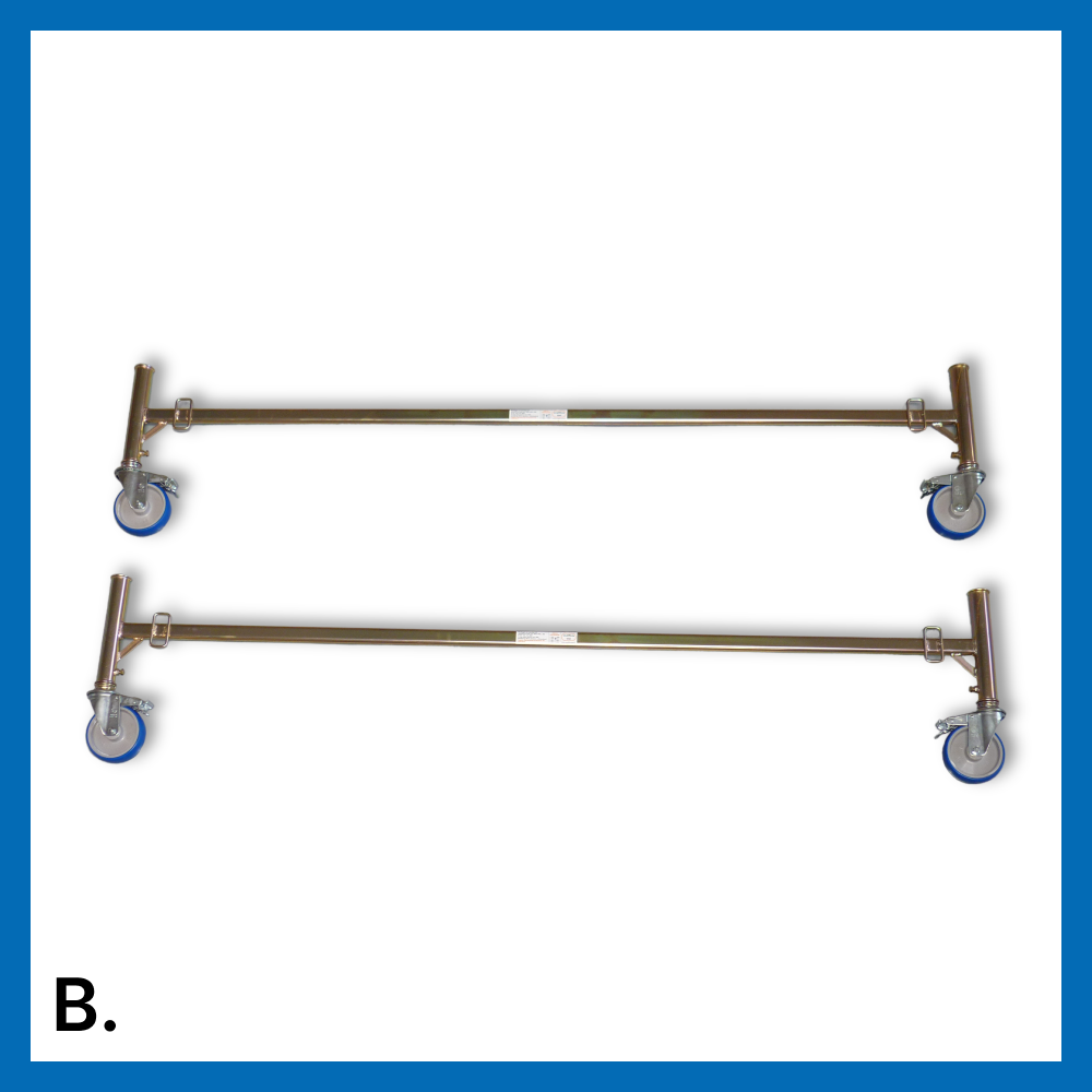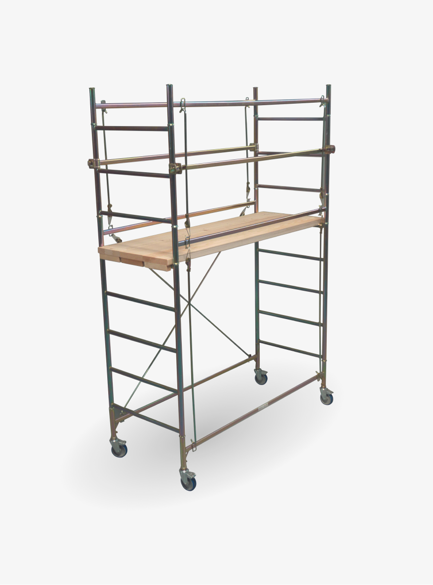Il trabattello può essere usato anche su scale e su piani inclinati. La base è composta da 4 ruote piroettanti con freni.